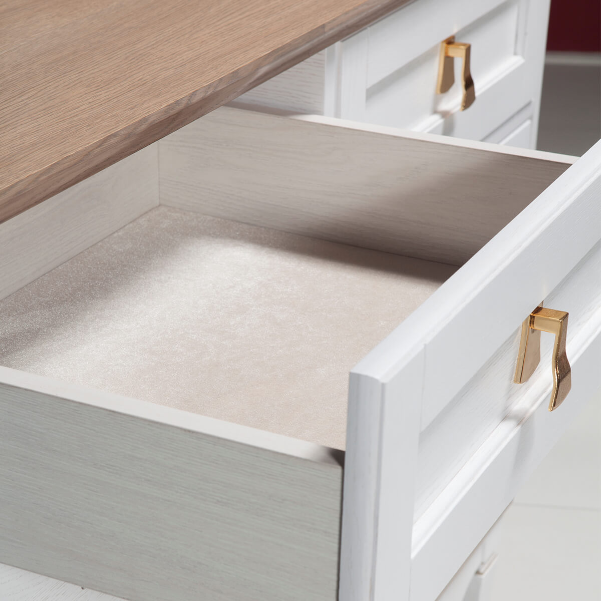 Крышка: плита МДФ, облицованная шпоном дуба, с обкладками из массива дуба