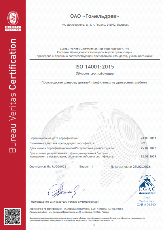 Сертификат ISO 14001:2015